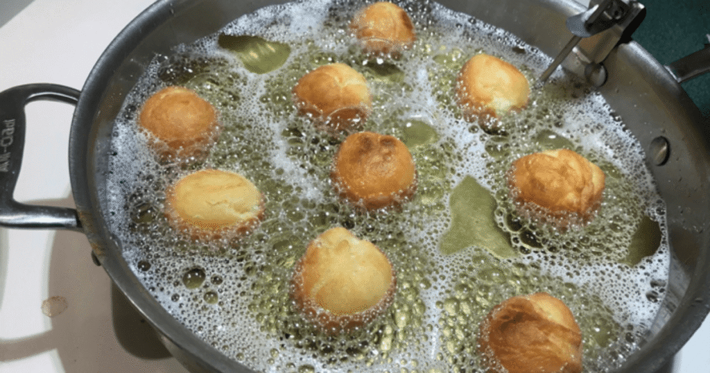 Le nonne italiane raramente usano un termometro. Invece, provano l’olio con un piccolo pezzo di impasto: se affonda per un attimo e poi risale lentamente con bollicine delicate, l’olio è pronto. Bolle aggressive indicano olio troppo caldo. Nessuna reazione significa olio freddo.